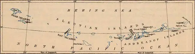 - ^ a b c d e f g h i j k One or more of the preceding sentences incorporates text from a publication now in the public domain: Chisholm, Hugh, ed. (1911). "Aleutian Islands". Encyclopædia Britannica. Vol. 1 (11th ed.). Cambridge University Press. pp. 543–544.