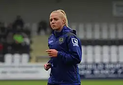 On 20 September, she made her Championship debut in a 3–0 win against Sheffield United.[19] On 18 November, she scored her first goal for Manchester United with a penalty spot in a 5–0 away win at Crystal Palace.[20] Under her leadership, Manchester United won the Championship and gained promotion to the FA WSL in their debut season.[21]