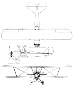 It is a fixed-gear three-seater, and was offered in two models, one with a Hispano-Suiza "A" engine of 150 hp (110 kW), priced at US$4000, and one with a Wright J-5 Whirlwind, priced at $6500. The Eaglerock was also available fitted with a variety of other engines, of up to 270 hp (200 kW), with prices starting at $2250.[1]