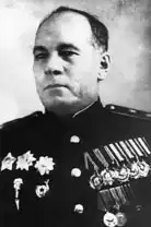 Alexander Fyodorovich Kazankin (Russian: Александр Фёдорович Казанкин; 15 April 1900 – 20 March 1955) was a Red Army Lieutenant general who commanded the Soviet airborne.[1][2] He fought in the Russian Civil War and graduated from the Frunze Military Academy in 1934. Kazankin led the 4th Airborne Corps during the Vyazma airborne operation. He later commanded the 1st Guards Airborne Division, 16th Guards Airborne Division, 12th Guards Rifle Corps and 39th Guards Rifle Corps. Kazankin became the Soviet airborne commander in October 1947, but was demoted to deputy commander in December 1948. After briefly becoming airborne forces commander again between January and March 1950, Kazankin successively became inspector general of the airborne forces and then deputy airborne forces inspector general before his death on 20 March 1955.[2]