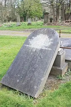 He died in North Berwick on 26 September 1892.[3] He is buried with his daughters in Warriston Cemetery in the north of Edinburgh.[1] The partly toppled monument lies in the area west of the sealed eastern entrance.