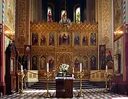 The cathedral is richly decorated and has eleven bells cast in Saint Petersburg, the largest of which weighs about 16 tons, more than the other ten combined. It has three altars, with the northern altar dedicated to Vladimir I and the southern to St. Sergius of Radonezh.