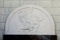 Alexander Sambugnac was a Yugoslav-American artist and sculptor. He was born April 22, 1888, in Zimony, Kingdom of Hungary (today Zemun, Serbia). He studied at the Royal Academy of Fine Arts in Budapest, Hungary and Munich, Germany where he studied under Franz von Stuck. In 1913, he went to Paris and studied with Antoine Bourdelle. His sculptures were commission for U.S. Post Offices for a Great Depression era program overseen by the U.S. Treasury Department. His work is also at the Museum of Fine Arts in Budapest, at a cathedral in Vienna, Austria and at the capitol in Havana, Cuba.[1][2] He became a naturalized U.S. citizen in 1938 and was a member of the Architectural League of New York and the National Sculpture Society.[1] Sambugnac's sculptures are at the David W. Dyer Federal Building and United States Courthouse where he crafted two cast-stone lunettes in 1938. The low-relief panels portray two allegorical figures representing themes of the spirit of justice on the lintels above the leather-covered doors. Love and Hope shows a young woman playing the lyre, while Wisdom and Courage depicts a seated figure gazing at a tablet of the law.[3]
