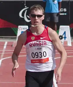 At the 2013 IPC Athletics World Championships in Lyon he entered two events and won medals in both. He was part of the Russian men's 4 × 100 metres relay team who took gold and won silver in the 400 metres, this time beaten by Namibian newcomer Johannes Nambala.[2][3] The following year he took part in his first European Championships, travelling to Swansea in Wales to compete at the 2014 IPC Athletics European Championships. Despite winning the 200m sprint, he failed to clinch gold in the 400m, losing out to team-mate Egor Sharov.[2]