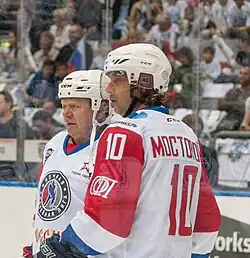 Mostovoi (right) and musician Igor Butman at a celebrity ice hockey match in 2017
