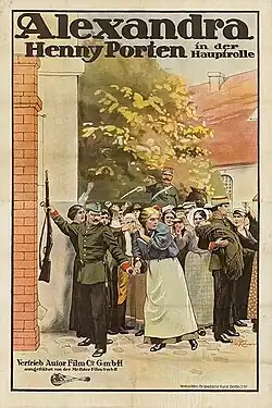Alexandra is a German silent film drama from 1914. It was directed by Curt A. Stark and stars his wife Henny Porten in the lead role. It is based a novel by Richard Voss[1][2][3]