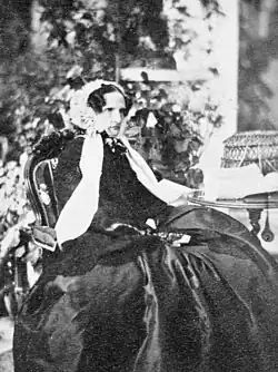 The princess's childhood was marked by the Napoleonic Wars and she was raised under difficult financial conditions.[3] Her father was a kind, religious man but a weak and indecisive ruler who, following military defeats in 1806, lost half of his kingdom. Charlotte's mother, admired for her beauty, intellect, and charm, was considered more decisive than her husband.[1] When the Prussians were defeated at the battle of Jena, Louise fled to Königsberg, taking her children with her, Charlotte then being eight years old. In East Prussia, they were given protection by Tsar Alexander I. "My daughter Charlotte is reserved and concentrated, but like her father, her seemingly cold appearance conceals the beating of her hot compassionate heart", wrote Queen Louise about her daughter.[4] On 27 October 1806, Berlin fell under Napoleon's control and Charlotte grew up in war-torn Memel, Prussia. In December 1809, Queen Louise finally returned to Berlin with her children, but after a few months, became ill and died of typhus at the age of 34, shortly after Charlotte's twelfth birthday.[3] As the eldest daughter, Charlotte was now the most senior lady at the court and had to undertake her mother's duties. For the rest of her life, Charlotte treasured her mother's memory.[5]