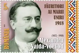 Alexandru Vaida-Voevod or Vaida-Voievod (27 February 1872 – 19 March 1950) was an Austro-Hungarian-born Romanian politician who was a supporter and promoter of the union of Transylvania (before 1920 part of Hungary) with the Romanian Old Kingdom. He later served as 28th Prime Minister of Romania.