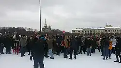 On 28 January, thousands rallied in at least 118 cities, with estimates ranging from approximately 3,500–4,500 participants per the Ministry of Internal Affairs to 5,000 or more according to independent observers. In Moscow, several thousand people defied a harsh winter and a heavy police presence on Tverskaya Street and in Pushkin Square.[44][45][46] Supporters also gathered in St. Petersburg, Novosibirsk, Yakutsk (at temperatures as low as –45 °C), Vladivostok and many other cities.[47][48][49]