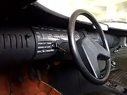 The Caimano features many unconventional design elements, one of the most striking being its large glass canopy-windshield, which incorporates the doors as well. The B and C pillars form a trapezoidal roll bar in the rear of the car, which also doubles as an adjustable spoiler which can be controlled from inside the cabin.[1] Other features include two smaller windows on the doors for ventilation or paying toll, pop up headlights, a large Alfa Romeo logo printed on the hood in burnt orange and a cylindrical dashboard.[2]