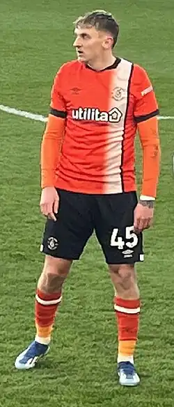 On 16 May 2023, he assisted Tom Lockyer's decisive goal in Luton's 2–0 win over Sunderland in the Championship play-off semi-final, giving the Hatters a 3–2 aggregate win.[26] He played 84 minutes of the play-off final against Coventry City at Wembley Stadium, where Luton were promoted to the Premier League with a 6–5 penalty shootout win.[27]