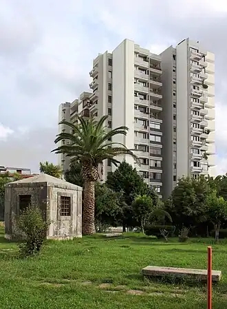The Alfragide Towers (Portuguese: Torres de Alfragide) are a set of residential buildings in Alfragide, Amadora, Portugal. The complex consists of three residential towers and a shopping centre at ground level, connecting the three buildings. It also contains an underground car park and a complex of swimming pools, currently unused. It is an example of brutalism-influenced architecture.[1]