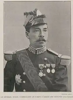 Dodds was named général de brigade, inspector of naval infantry, and Grand Officer of the Legion of Honour in 1892, then General of Division in 1898. In 1900, he was given the High Command of colonial troops in French Indochina.