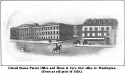 In 1846, Munn and Beach established a prominent patent agency within Scientific American named Munn & Co., in synergy with the scientists featured in the magazine who wanted to patent their inventions.[5] They provided the service for the patent applications and tracked the progress once it reached the U.S. Patent Office, having their headquarters next door in Washington.