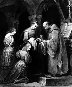 Alfred Johannot (March 21, 1800 – 1837) was a French painter and engraver born in Offenbach, Germany.[1] His family were French refugees who went to Germany after the Edict of Nantes was revoked. He started out as an engraver, and then came into being a professional painter in 1831. His work was collected by Louis Philippe I and was displayed at the Palace of Versailles. He often painted contemporary court and ceremonial themes, before moving into historical French subjects. Johannot designed the covers for the first illustrated French editions for numerous British writers such as Lord Byron. He died on 7 December 1837.[2]