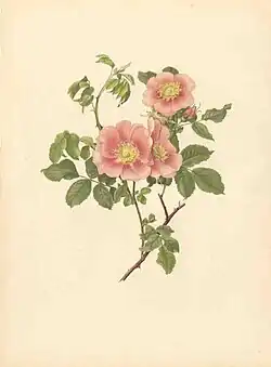 Ellen Willmott's The Genus Rosa, published in two volumes between 1910 and 1914,[16] includes 132 watercolours of roses painted by Parsons between 1890 and 1908, which are now held by the Lindley Library in London.[17] Willmott also commissioned Parsons to paint her three gardens.[18]