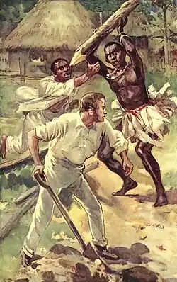 The British showed themselves in a paternalistic attitude and a certain degree of cultural domination. Fuller realized a lot of work in education, oversaw the printing and negotiated with the local king. He also translated the book Pilgrims Progress in Douala. He left Cameroon in 1888 and until his death he lived in England.[13]