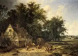 Alfred's work was first accepted by the Royal Academy in 1843, after which he regularly exhibited there, until 1890. Like his siblings he also exhibited at the Society of British Artists, renamed the Royal Society of British Artists in 1887. With the improved fortunes of Edward Williams' family, they moved in 1846 from Cromer Street to 32 Castelnau, Barnes in Surrey. There the large coach house was put to use as a family studio. The house exists to this day as 92 Castelnau. With the growing fame of the family they were known as the Williams School of painters or simply as the Barnes School. Alfred had a close friendship with his brother Sidney Richard Percy and bride, and he boarded with them in 1857 for a while at their home Florence Villa, in Wimbledon. Alfred Williams exhibited at the Royal Academy from 1843 to 1891 and works exhibited included scenes of the Thames,