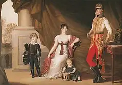On 19 March 1840, he married Princess Marie Friederike Charlotte of Württemberg (1816–1887).[4] Princess Marie was a daughter of King William I of Württemberg and Grand Duchess Catherine Pavlovna of Russia (the fourth daughter of Tsar Paul I of Russia and Duchess Sophie Dorothea of Württemberg).[5] Reportedly, the marriage, was an unhappy one, as was his sister-in-law Sophie's marriage to King William III of the Netherlands.[6] Marie's younger half-brother, Charles, became King in June 1864 following the death of her father.[7]