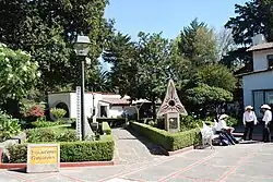 The main house is in the center of the property. It contains seven rooms dedicated to the showing of various pieces related to watercolor as well as an intact study. The seven rooms are arranged by chronological order beginning from the pre-Hispanic period until the present day with both Mexican and international watercolor art.[7] The base of this collection are 300 watercolors which were donated by Guati Rojo and his wife when the museum was founded.[4] Although western watercolor painting has its origins in Asia,[1] the pre-Hispanic room is included as many clay vessels were painted with paints made from water and natural pigments. These same paints were used to create codices, which were used into the early colonial period as a form of record keeping. The room after this focuses on 19th-century work, with miniature portraits on ivory and paper, as well as works done by travelers who used the medium to record images of the places they visited.[1][2] The rest of the space is dedicated to more modern works. In addition to Guati Rojo’s own works, which fill two rooms, others include Mujer Indígena by Pastor Velázquez, Amapolas and Bahia de Habana, Cuba by Manuel M. Ituarte, as well as several works by Eduardo Solares and Leandro Izaguirre.[1]
