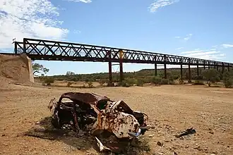 The Algebuckina Bridge is a Victorian era railway bridge in the Australian state of South Australia located about 55 kilometres (34 mi) south-east of the town of Oodnadatta in the locality of Allandale Station on the route of the now-closed Central Australia Railway.[1][2] It opened in January 1892.[3][4][5] It was the longest bridge in South Australia[3][5] until construction of the Seaford suburban rail line across the Onkaparinga River south of Adelaide in 2014.[6]