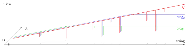 Note that there is no way to compare and or or or . There are strings such that the whole string is easy to describe, but its substrings are very hard to describe.