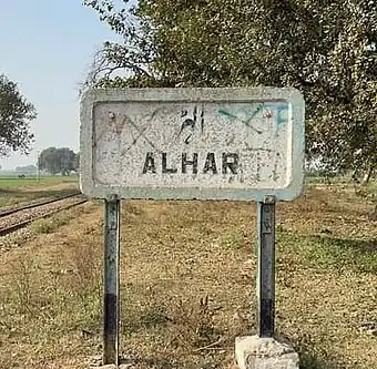 Alhar Railway Station (Urdu: الہڑ ریلوے اسٹیشن, Punjabi: الہڑ ریلوے اسٹیشن) is located in Alhar village, Sialkot district of Punjab province, Pakistan.