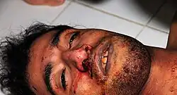 Ali Abdulhadi Saleh Jafar Mushaima (Arabic: علي عبدالهادي صالح جعفر مشيمع) (26 August 1989[1] – 14 February 2011) was a 21-year-old Bahraini who on Monday 14 February 2011, the "Bahraini Day of Rage", became the first fatality of the Bahraini Uprising. He died on his way to hospital from injuries he received when he was hit in the back by birdshot pellets[2] fired from close range (two to five meters) by security forces (riot police)[3]: 228–9 during the Bahraini uprising (2011–present). According to Nabeel Rajab, head of Bahrain Centre for Human Rights, Mushaima was participating in a protest in Al Daih, in Manama's outskirt, when he was shot.