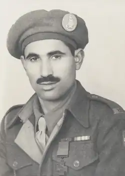 Ali Haidar Khan VC (21 August 1913[2] – 15 July 1999[2]) was a Pakistani recipient of the Victoria Cross, the highest and most prestigious award for gallantry in the face of the enemy that can be awarded to British and Commonwealth forces. During the Second World War, at Fusignano, Italy, 31-year-old Ali Haidar, serving in the British Indian Army, performed an act of bravery for which he was awarded the Victoria Cross.