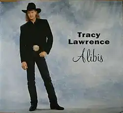 "Alibis" is a song written by Randy Boudreaux, and recorded by American country music artist Tracy Lawrence. It was released on February 11, 1993, as the lead single and title track from his album Alibis. The song became Lawrence's second number one country hit in 1993 on the US Billboard Hot Country Singles & Tracks chart and on the Canadian RPM Country Tracks chart.