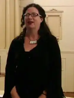 ![]() Dr. Alice Gorman introduces a film at Camperdown, Australia | |