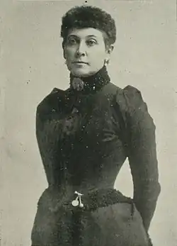 For some time prior to the panic, she had been in Chicago, representing Washington as chair of its board of lady managers and superintendent of the woman's department of her State at the World's Columbian Exposition (1893). Here she had made many friends who had learned to appreciate her business talent,[5] while she took an active and conspicuous part in preparing various novel displays for the exposition,[1] her work as Lady Manager being characteristic of her usual progressive spirit.[3]