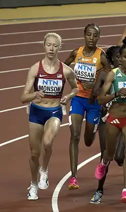 On July 23, competing at the London Diamond League, Monson ran a new American record time for the 5000m, clocking 14:19.45 to break Shelby Houlihan's previous record time of 14:23.92.[10] After second-place finishes in the 5000 m and 10,000 m at the US Championships, she was selected to contest both events at the 2023 World Athletics Championships in Budapest in August.[11] In Budapest, she finished fifth in the 10,000 m, the highest finish for an American since Emily Infeld's bronze in 2015. In the 5000 m, she qualified for the final where she placed 14th in a time of 15:04.08.