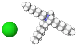Aliquat 336 (Starks' catalyst) is a quaternary ammonium salt used as a phase transfer catalyst and metal extraction reagent. It contains a mixture of C8 (octyl) and C10 (decyl) chains with C8 predominating. It is an ionic liquid.[1]