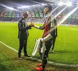 Beiranvand was named 2018 AFC Champions League semi-final first leg player of the week following his performance against Al Sadd.[28] He was also "Man of the match" and with "Team of the Week" 2nd leg after he saved many of Al Sadd's chances and helped Persepolis reach the final,[6][29] His five clean sheets during the competition was the most of any goalkeeper.[30] He was reportedly chosen as one of the candidates for the 2018 Asian Footballer of the Year award,[31] but his exclusion was described by Asian football writers as a big shock, and an outrageous and scandalous event.[32][33][34] The following season Beiranvand kept 16 clean sheets in 2018–19 Pro League and claimed Golden Gloves for three consecutive years and four successive times overall.