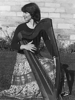 Kinnaird is also a musician, a gift that led her to discover relationships between music and glass engraving, notably through designs based on Lissajous figures.[17][18] She started playing the harp at 14 and has been credited with starting the Scottish harp revival and the Celtic harp renaissance.[19]She plays, teaches and lectures on the small Scottish harp also known as the clàrsach.[20] She was one of the first acts signed to Temple Records during the 1970s and she has had eight albums released through the label.[21] She worked with the Scottish music group Battlefield Band on their albums Music in Trust Vol I (1987) and Music in Trust Vol II (1988).