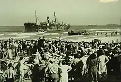 - On 12 March 1947, the Shabtai Luzinsky (823 passengers) ran the blockade and beached itself north of Gaza City, where the passengers disembarked, and most escaped a British Army cordon. Hundreds of local residents came down to the beach to mingle with passengers who evaded arrest. Many residents were mistaken for refugees, arrested, and sent to Cyprus, with some 460 locals returned home the following week.[19]