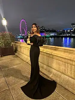 She was ranked number three on The Pakistan Daily's 30 under 30 list in 2021.[55] Ayaz regularly participates at global climate forums on behalf of the UK Government and previously spoke at the 2021 United Nations Climate Change Conference (COP26).[56][57][58]