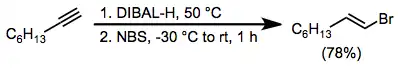 Treatment of alkenylaluminates with halogen electrophiles such as N-bromosuccinimide (NBS) and iodine leads to the formation of halogenated olefins.[16] These products are useful for cross-coupling reactions.