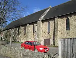 The church dates from 1903 and the stone was taken from a seam in the local colliery and delivered to the site by the colliers.[1]