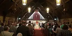 After the conclusion of the litigation, Thompson and Bruno reached an agreement for All Saints to buy the church property from the diocese.[1][4] As dean of the western convocation of the Anglican Communion Network,[13] Thompson and All Saints were involved in the formation of the Anglican Church in North America. The western convocation was recognized as the Diocese of Western Anglicans, with All Saints as a founding member. As the leader of the western Anglican proto-diocese, Thompson was elected the first bishop of the newly approved diocese at ACNA's inaugural assembly in Bedford, Texas, in 2009. Archbishop Robert Duncan consecrated him in Newport Beach on October 31, 2009.[13] In 2012, Thompson stepped down as rector of All Saints to focus solely on his diocesan work.[14] He was succeeded by the Rev. Scott Pedersen as All Saints' seventh rector.[1]