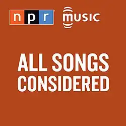 All Songs Considered is a weekly online podcast and radio program hosted by Robin Hilton. It was created in January 2000 by NPR's All Things Considered then-director Bob Boilen[1] and produced by Robin Hilton beginning in 2001. At first, the show featured information and streaming audio full versions of the songs heard between storieson All Things Considered. The program has since turned into a source of discovery for new music of all genres. In August 2005, the program began podcasting for free.[2] In 2005, it began webcasting and podcasting live concerts from Washington, D.C.'s 9:30 Club, including acts such as Animal Collective, The Decemberists, Neko Case, and Tom Waits.[3]