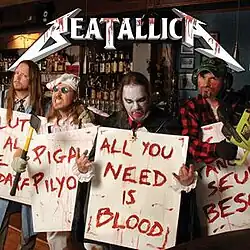 "All You Need Is Blood" is the name of the first single released by mash-up band Beatallica, a group known for their combination of Beatles music and Metallica lyrics and riffs. The song is a parody of the Beatles' song "All You Need Is Love". In the same tradition of the Beatles, the cover features the members of Beatallica holding signs that read the song title in different languages, and each track (except for the last) begins with a musical quote from a different national anthem.