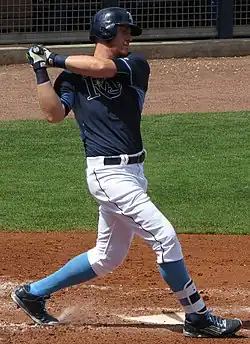 ![]() Dykstra batting for the Tampa Bay Rays in 2015 | |