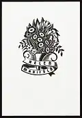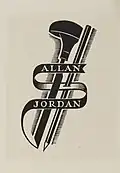 Jordan joined artists Neville Barnett, Roy Davies, Adrian Feint, Lionel Lindsay and Philip Litchfield in a revival of the bookplate before World War Two.[18] His Ex Libris bookplates often employ intricate rebuses to characterise their owners,[19] and such is the case with that he created for World War Two hero Russell Francis Wright MBE (1920–2012).[9][20][21]
