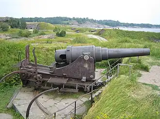 Russia and Germany had agreed in the Brest-Litovsk peace treaty that the Russian Baltic fleet and coast fortresses would not get involved in military operations in Finland. It also came out afterwards that the Russian soldiers were not very interested in the mutual skirmishes of Finns.[4] More information about the disputed event has been recently found from a 26 March 1918 dated report written by Oskar Gros who was a member in Staffans's team. The report tells that the work was done under supervision of Staffans and also consent with the Russian officers, who wanted to avoid that operative cannons had ended up to the hands of the Red Guards or German troops.[5]