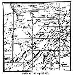 Prior to European exploration and settlement, trails through the Alleghenies had been transited for many generations by American Indian tribes such as the Iroquois, Shawnee, Delaware, Catawba and others, for purposes of trade, hunting and, especially, warfare.[16] Western Virginia "Cherokee" were reported at Cherokee Falls, today's Valley Falls of the Tygart Valley.[17] Indian trader Charles Poke's trading post dates from 1731 with the Calicuas of Cherokee Falls still in the region from the previous century.