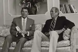 ![]() Ronald Reagan visits with Drury in 1981 | |