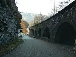 - An old viaduct from the Allevard Forges Railway which connected the plant to the mines of Saint-Pierre-d'Allevard and Le Cheylas station, colloquially called le Tacot (the Jalopy) which was open until 1968.