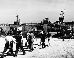Despite the favorable conditions, unloading soon fell behind schedule. The ships were combat loaded, but in the expectation that there would be heavy fighting, ammunition was loaded on top, and had to be removed to access other stores. Nor did trucks arrive fast enough to keep up with the pace of the advance.[61] There was also a shortage of labor. Newly arrived service units were expected to provide additional labor on the beaches, but the advance proceeded too fast, and these units moved forward to operate the dump sites. Italian service units proved extremely useful, and POWs were used where allowed by the Third Geneva Convention, but there were language barriers since they spoke German, Russian, Polish and occasionally other languages. POWs needed guarding to prevent their escape or reprisal attacks on them by civilians, and insufficient military police or combat unit personnel were available for guard duty.[60][62] Local civilian labor proved difficult to find, as most able-bodied men had been deported for forced labor, joined the French Forces of the Interior (FFI) or fled to North Africa to join the Free French forces. Only a thousand, mostly teenagers and old men, had been hired by 20 August, and only seven thousand French civilians were working for the US forces by mid-September.[58]